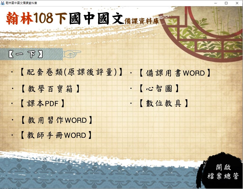 108學年下學期 國中 翰林版 國文備課資料庫 1年級(含課本、卷類資源、備課用書、習作含解答、教學輔助資源)教學光碟DVD版